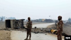 د ممنوع اعلان شوي ډلې تحريک طالبان پاکستان وياند محمد خراساني د دې حملې پړه پر غاړه اخيستې او ويلي يې دي چې په دغه بمي چاودنه کې پنځه سرتېري وژل شوي دي.