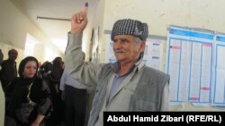د رأیې اچولو مرکزونو ته ورغلو کسانو د کردستان د خپلواکۍ لپاره احساسات څرګندول.