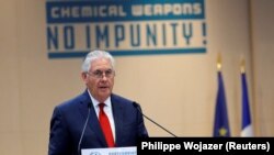 رکس ټېلرسن دا څرګندونې د سې شنبې د ورځې په ماښام په پاریس کې د امریکا او فرانسې په شمول د ۲۴ هېوادونو لهخوا د هغه نوي سازمان د پرانیستې په مراسمو کې وکړې چې د هغو کسانو د تثبیت او سزا ورکولو په هدف جوړ شوی چې کیمیاوي وسلې کاروي.