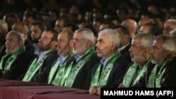 په پرونیو مراسمو کې د حماس پوځي څانګې غړي په پوځي جامو او ماشینګڼونو سمبال ولاړ وو.