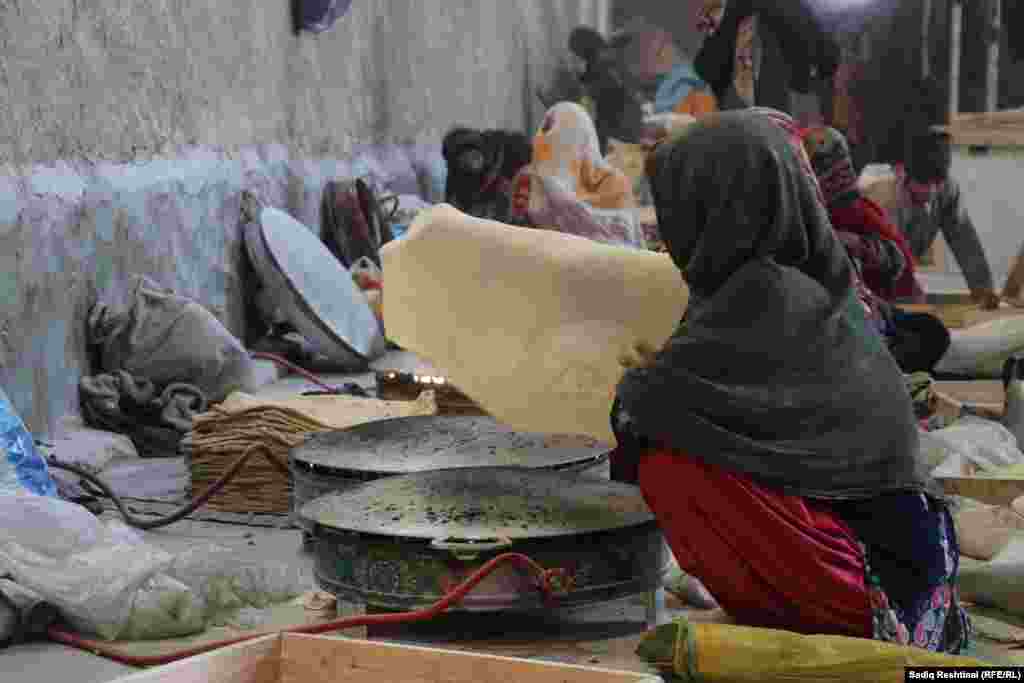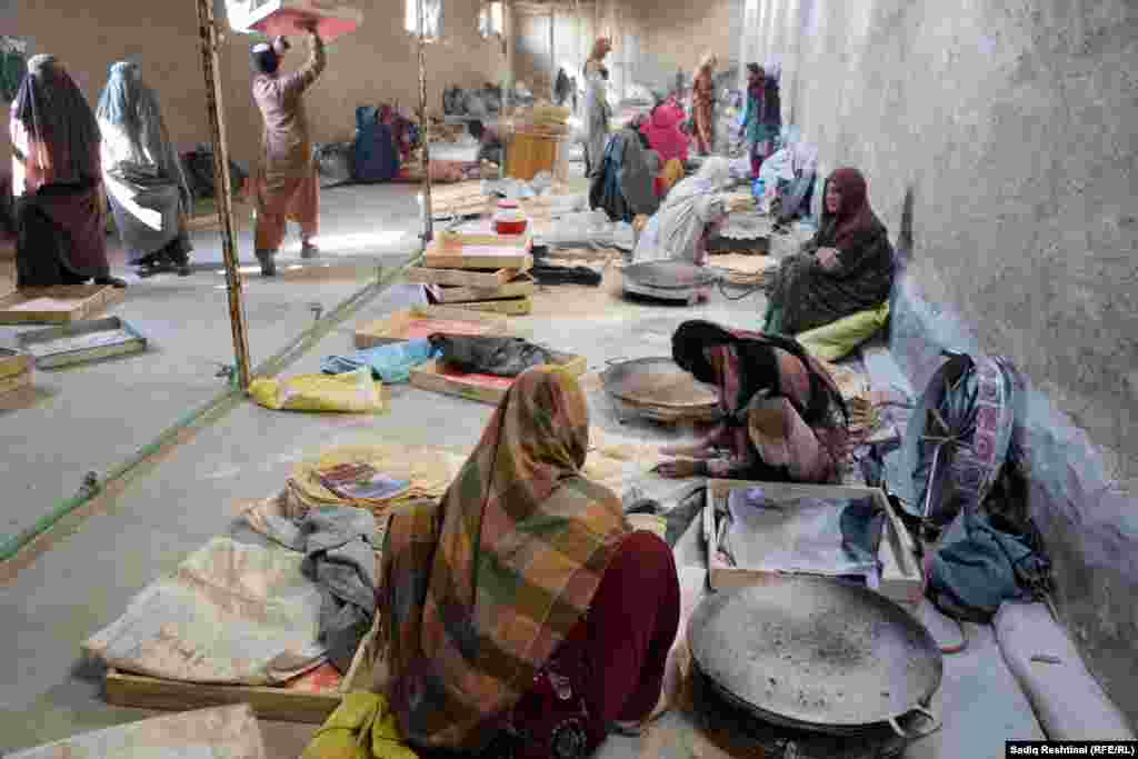 په کندهار ښار کې په یوه لوی پخلنځي کې لسګونه مېرمنې هره ورځ شااوخوا پنځه زره کورنۍ ډوډۍ پخوي.