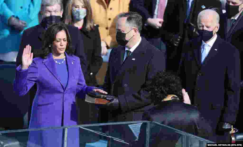 ۷۸کلن بایډن ته د امریکا د سترې محکمې قاضي القضات جان رابرت د کانګرس په انګړ کې قسم ورکړ.