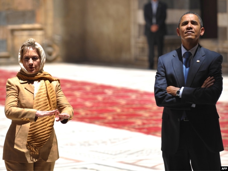 د امریکا ولسمشر بارک اوباما او ددې هېواد د بهرنیو چارو وزیره هیلري کلینټن په قاهره کې د سلطان حسن جومات ته ورغلل.